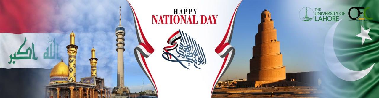تلقى عميد الكلية (أ.م.د. كمال كاظم الحسني) رسالة تهنئة من رئيس جامعة لاهور الباكستانية (الاستاذ الدكتور محمد أشرف) بمناسبة العيد الوطني لجمهورية العراق.