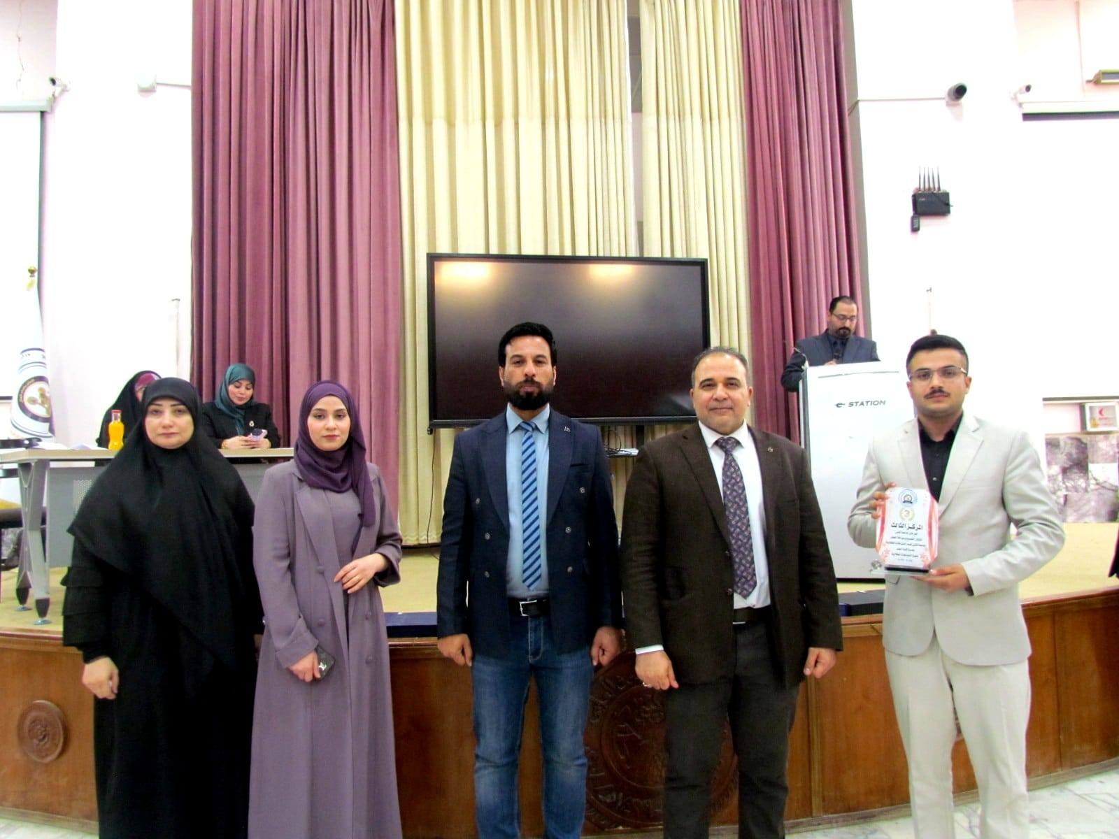 حقق طلبة كلية الإدارة والاقتصاد المركز الثالث فردياً وفرقياً في مهرجان جامعة المثنى الطلابي للشعر الفصيح وعرافة الحفل الذي تم تنظيمه بتنسيق مشترك بين كلية الادارة والاقتصاد وكلية الطب